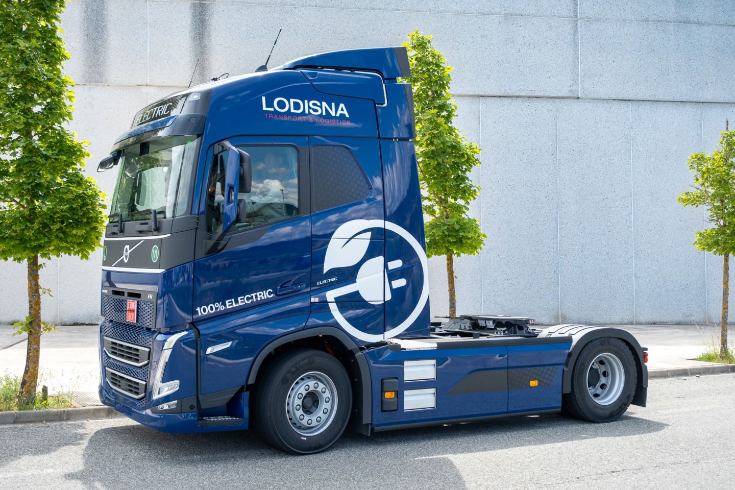 El modelo Volvo FH Electric, pionero en la industria de transporte de larga distancia, alcanza una autonomía de hasta 300 kilómetros, destacando su línea motriz potente y suave. Cuenta con 3 motores eléctricos que se combinan con la caja de cambios I-Shift de Volvo, y que ofrecen tres potencias distintas: continua al eje de 315kw (430PH), pico al eje de 490 kW (666HP) y par motor instantáneo de hasta 2.400 Nm. Además, están dotados de baterías de última generación, con un almacenamiento de energía total de 540kWh. Este camión ha sido incorporado a la flota de Lodisna como una solución completa de Volvo, llevando asociado un contrato de mantenimiento y reparación, gestión de flota, a través de una solución completa de Volvo Financial Services especial para la transformación a electromovilidad.